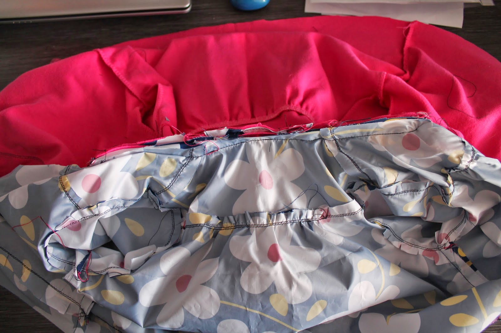 Капюшон вшиваем между подкладом и верхом, надсекаем припуски